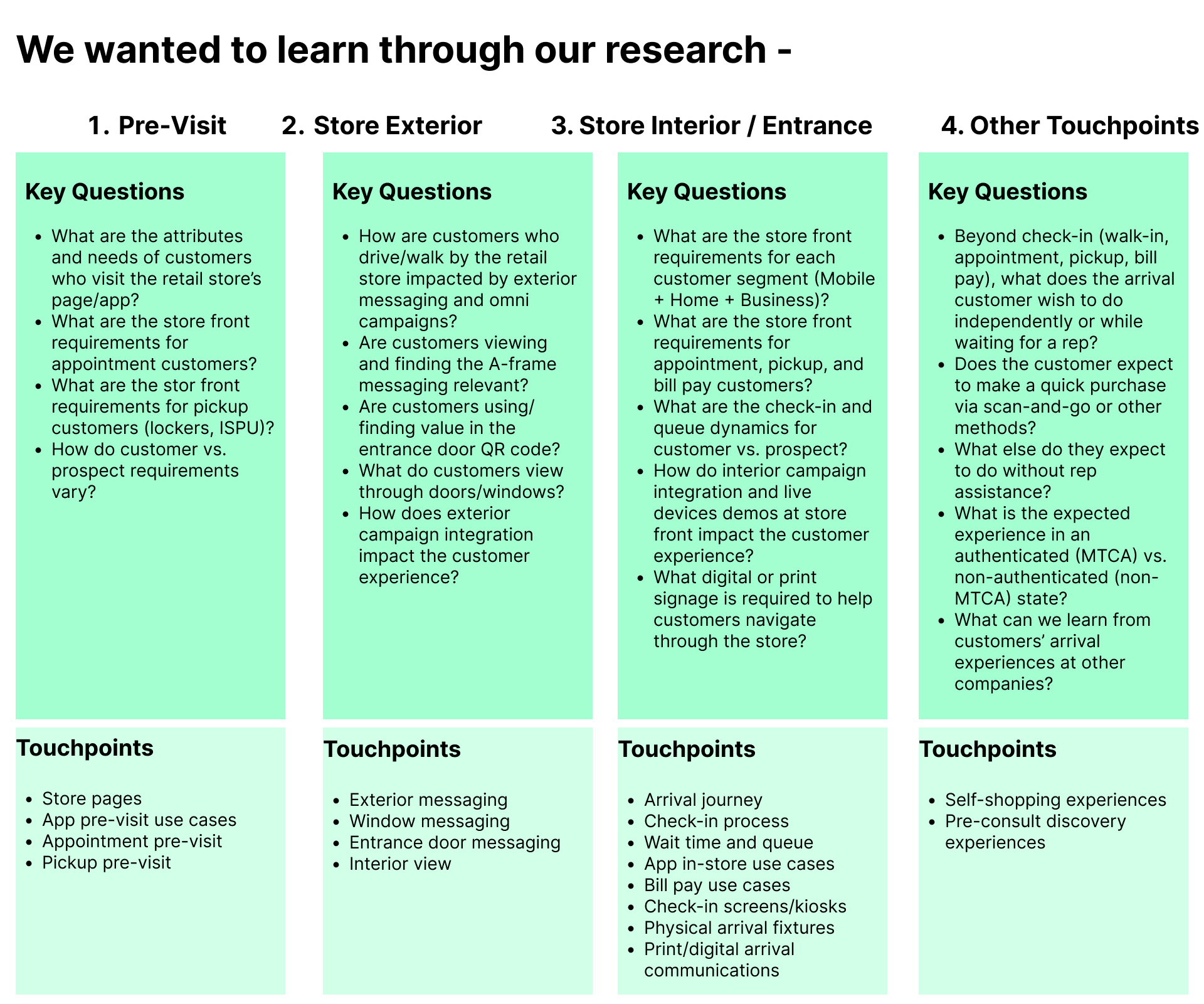 This research was exploratory in nature, aimed at informing the future state of the store entry experience through a variety of new use cases. The insights gathered serve as a foundation for reimagining and revamping the retail store experience in the near future.