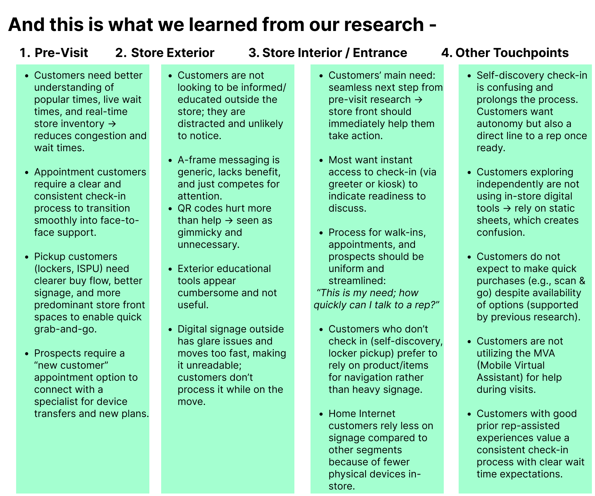 - Unclear customer journeys led to difficulties for both customers and employees during interactions.